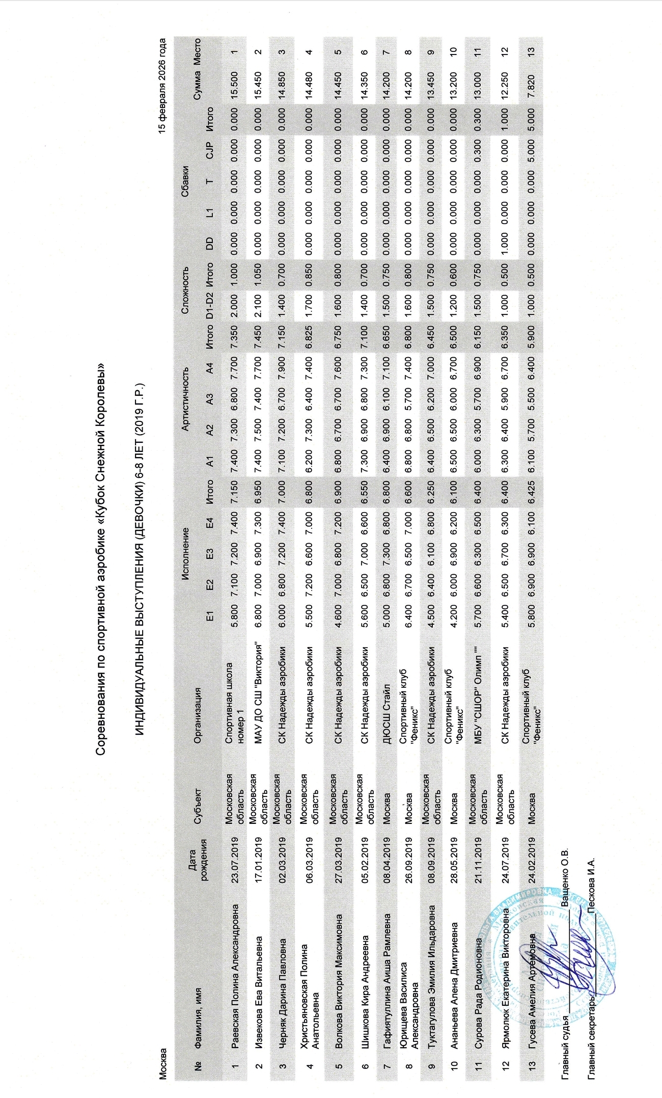 7 2026-02-26 Спорт Начисление рейтинга за загруженное достижение: Диплом за 1 место в дисциплине ТГ 6-8 лет в соревнованиях по спортивной аэробике "Кубок Снежной Королевы", г. Москва, 15.02.2026)