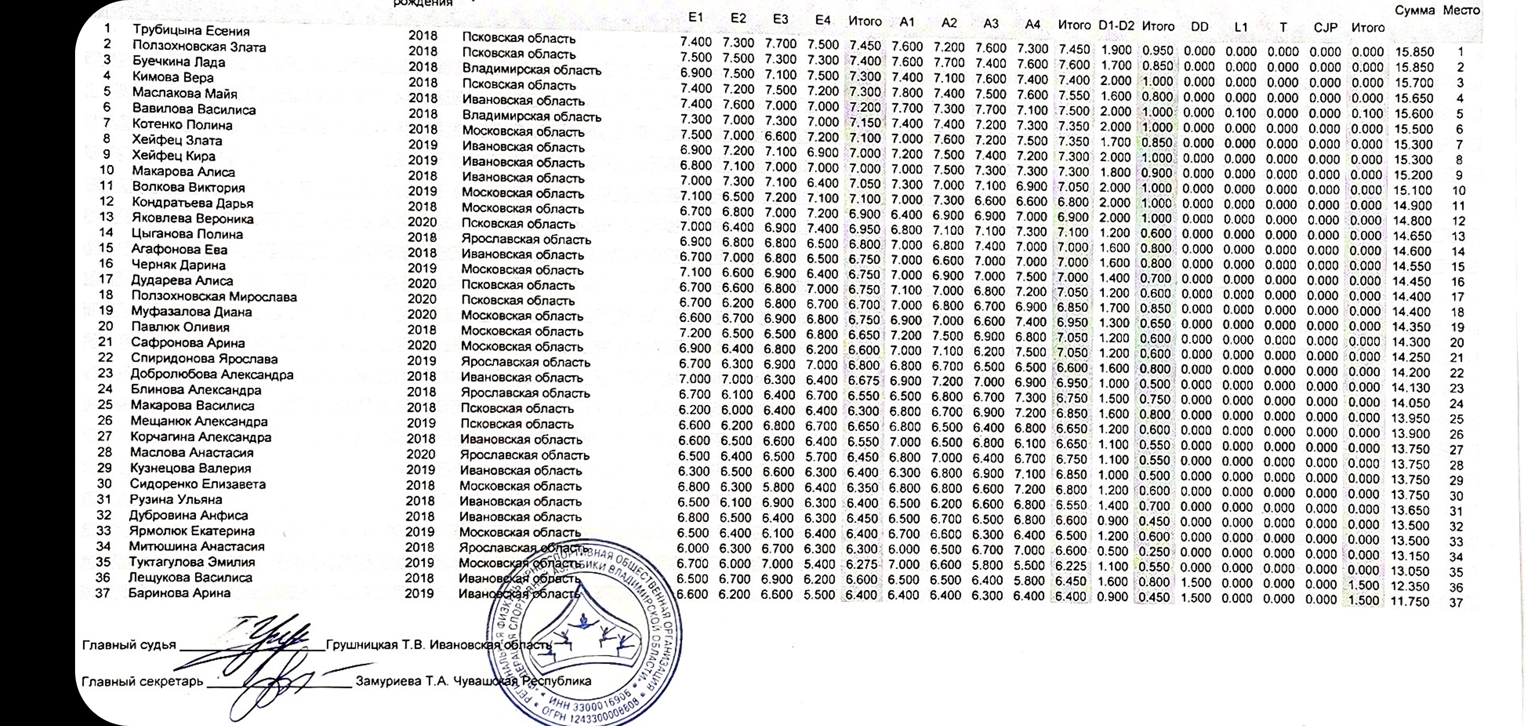 Отклонено (Отсутствует подпись и печать организаторов соревнования.