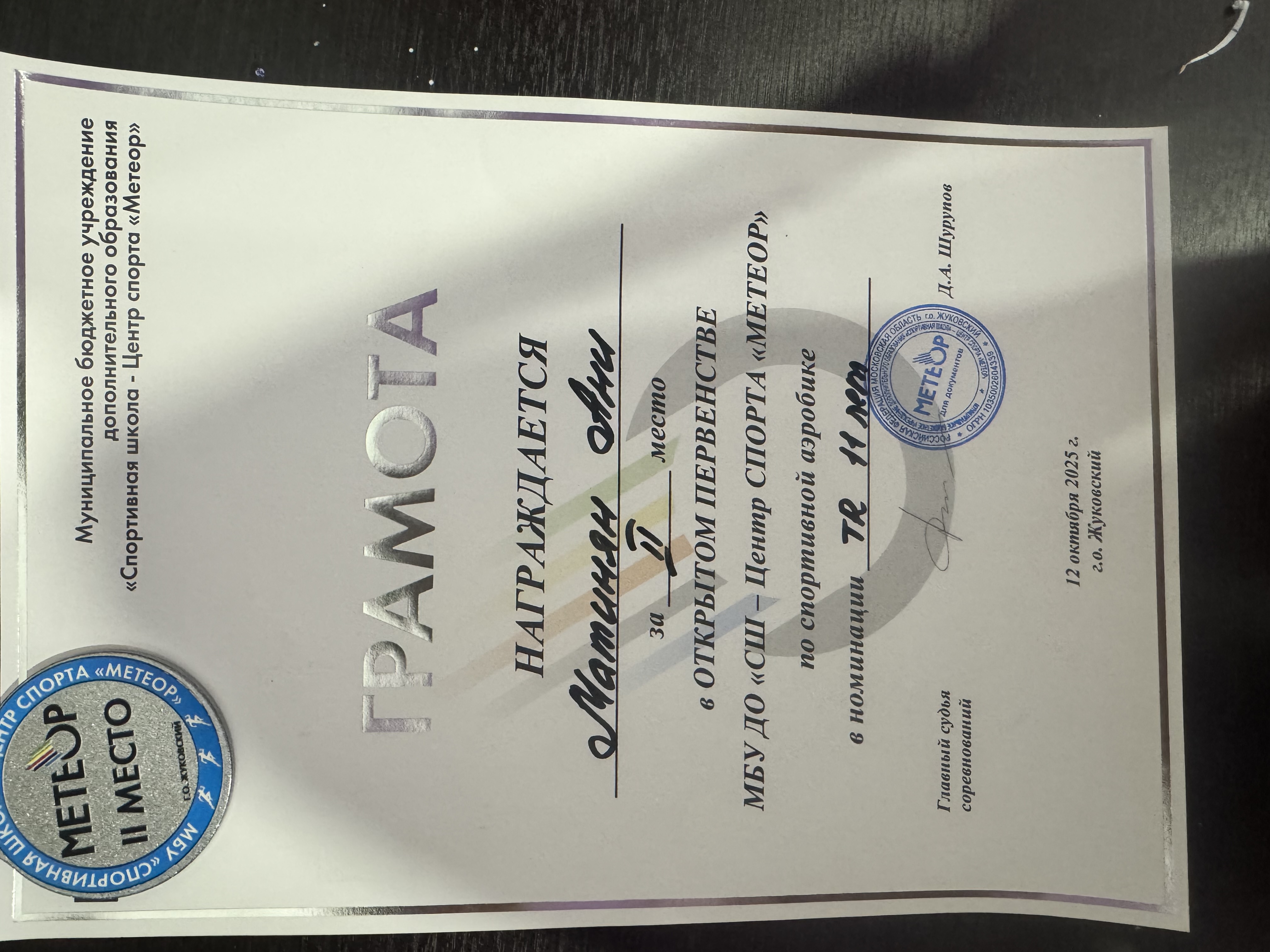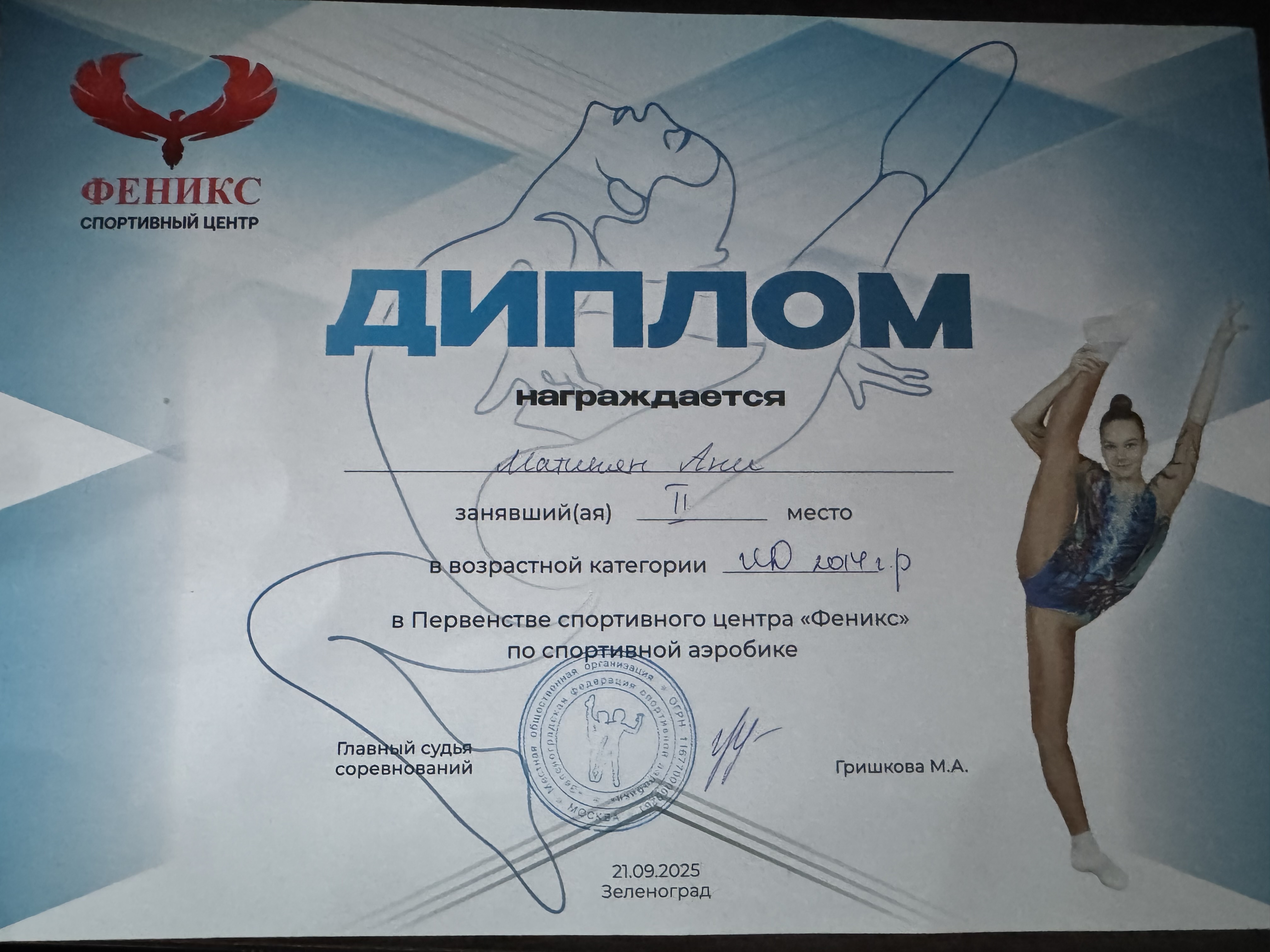 10 2025-05-18 Спорт 2 место в соревнованиях по спортивной аэробике в рамках Всемирной Олимпиады (девочки группа ) , город Люберцы , 11.05.25г.)