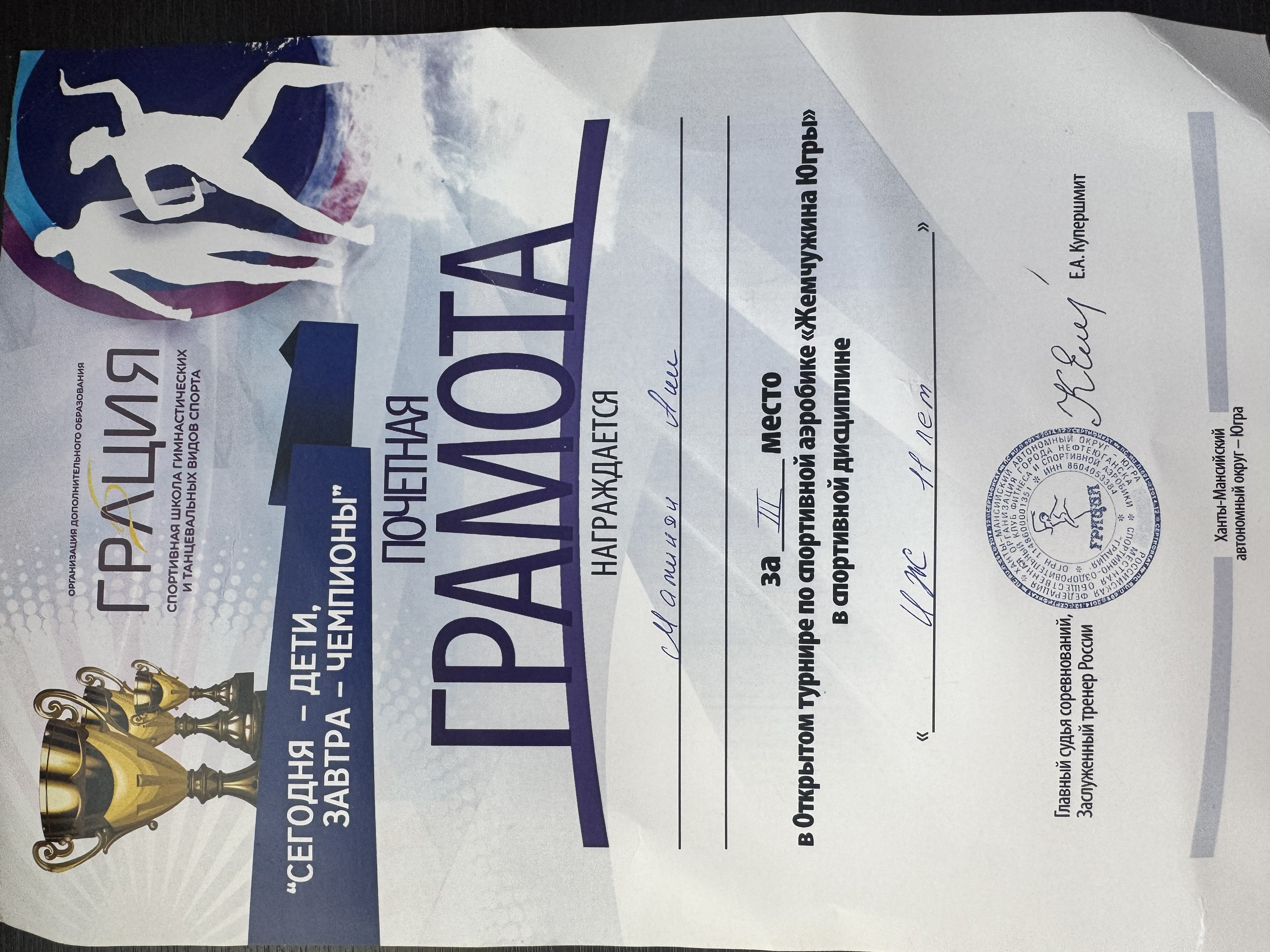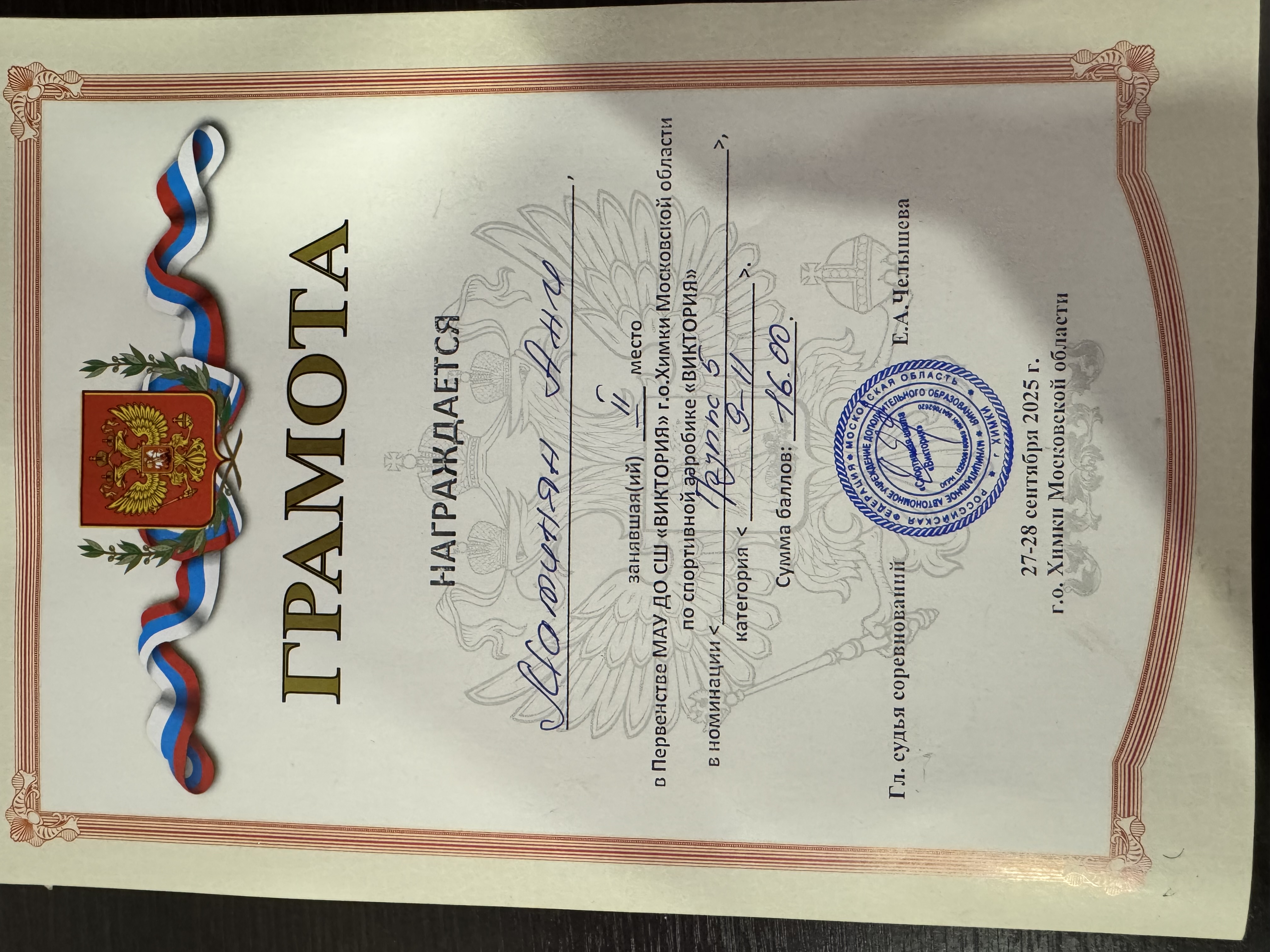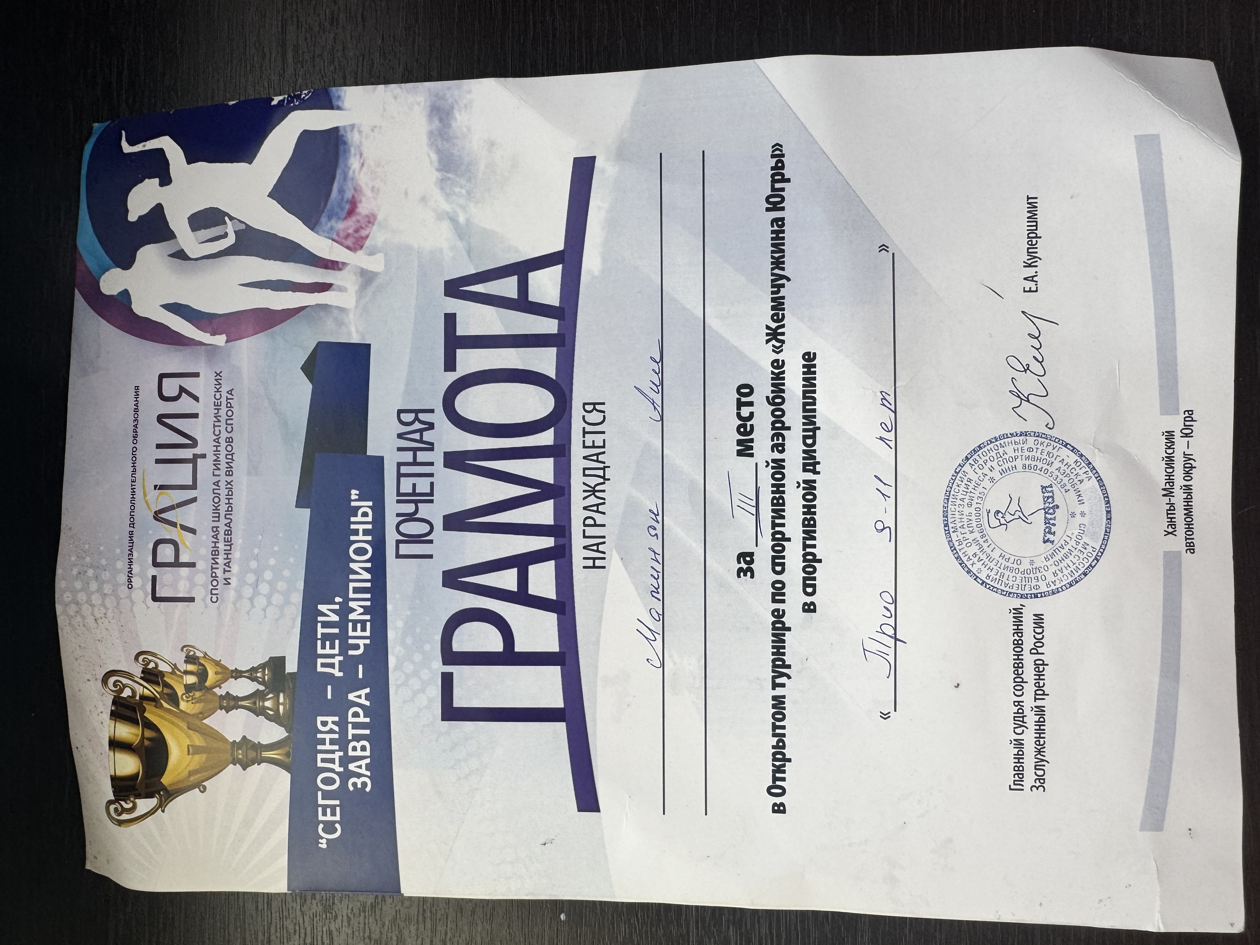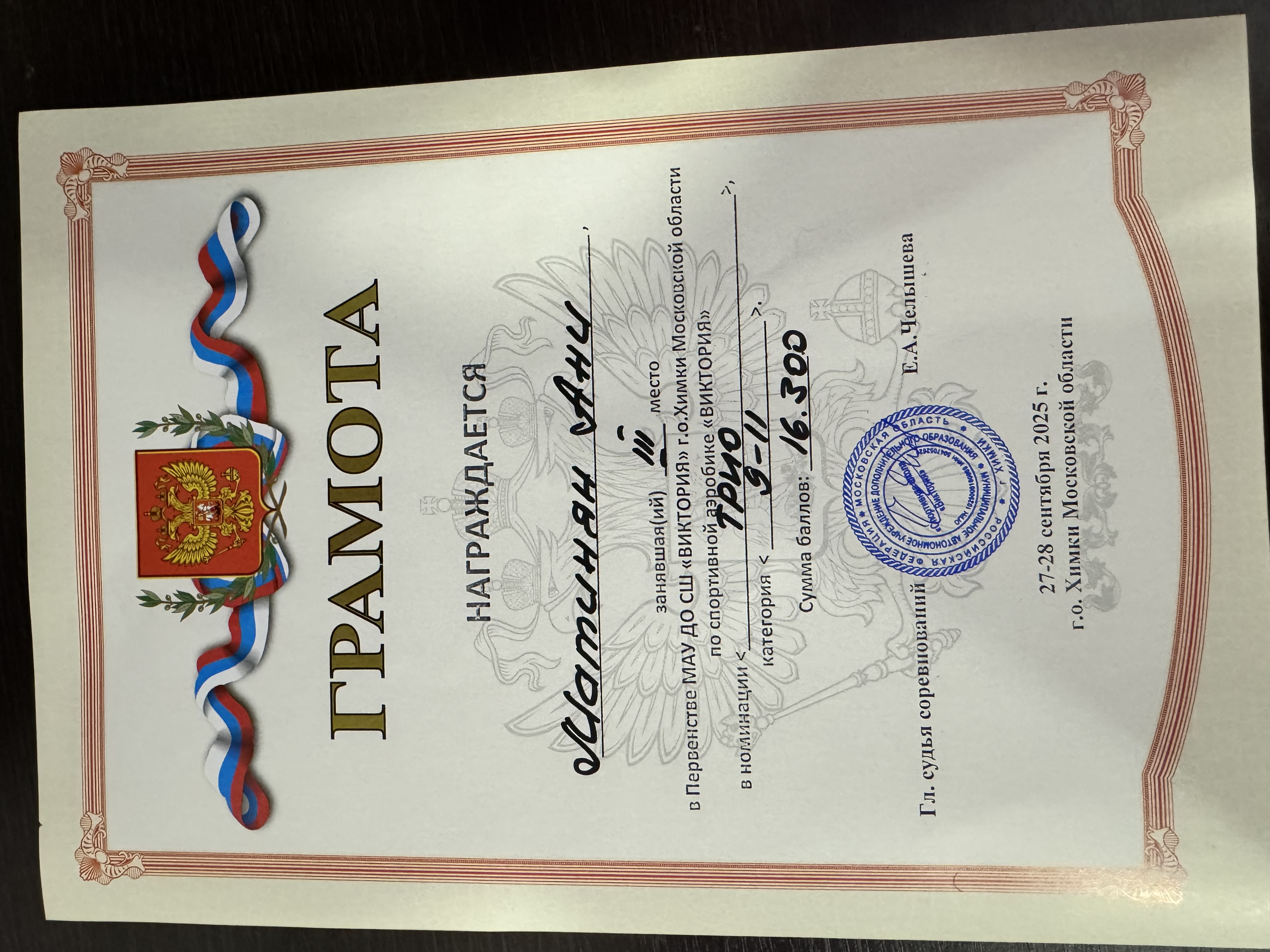 10 2025-05-18 Спорт 2 место в соревнованиях по спортивной аэробике в рамках Всемирной Олимпиады (девочки трио 11 лет ) , город Люберцы , 11.05.25г.)