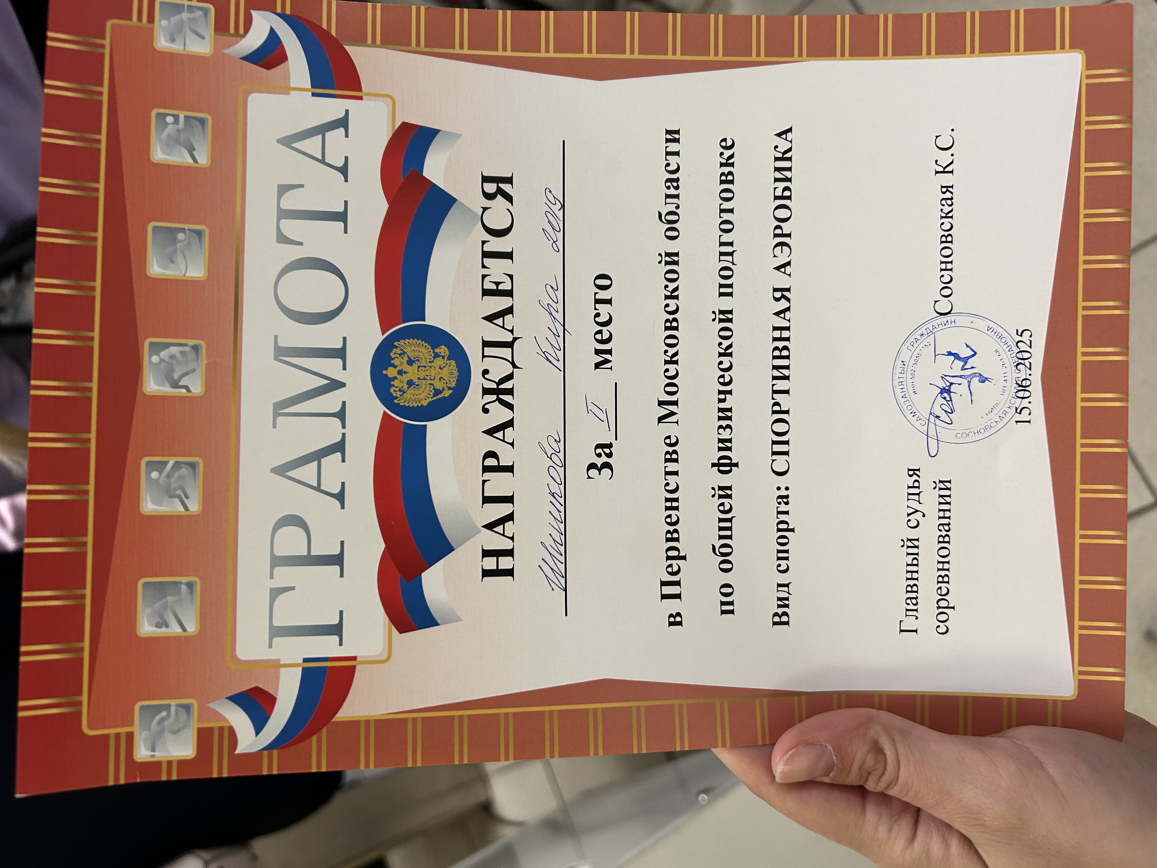 11 2025-05-18 Спорт 1 место в соревнованиях по спортивной аэробике в рамках Всемирной Олимпиады (танцевальная гимнастика ) , город Люберцы , 11.05.25г.)