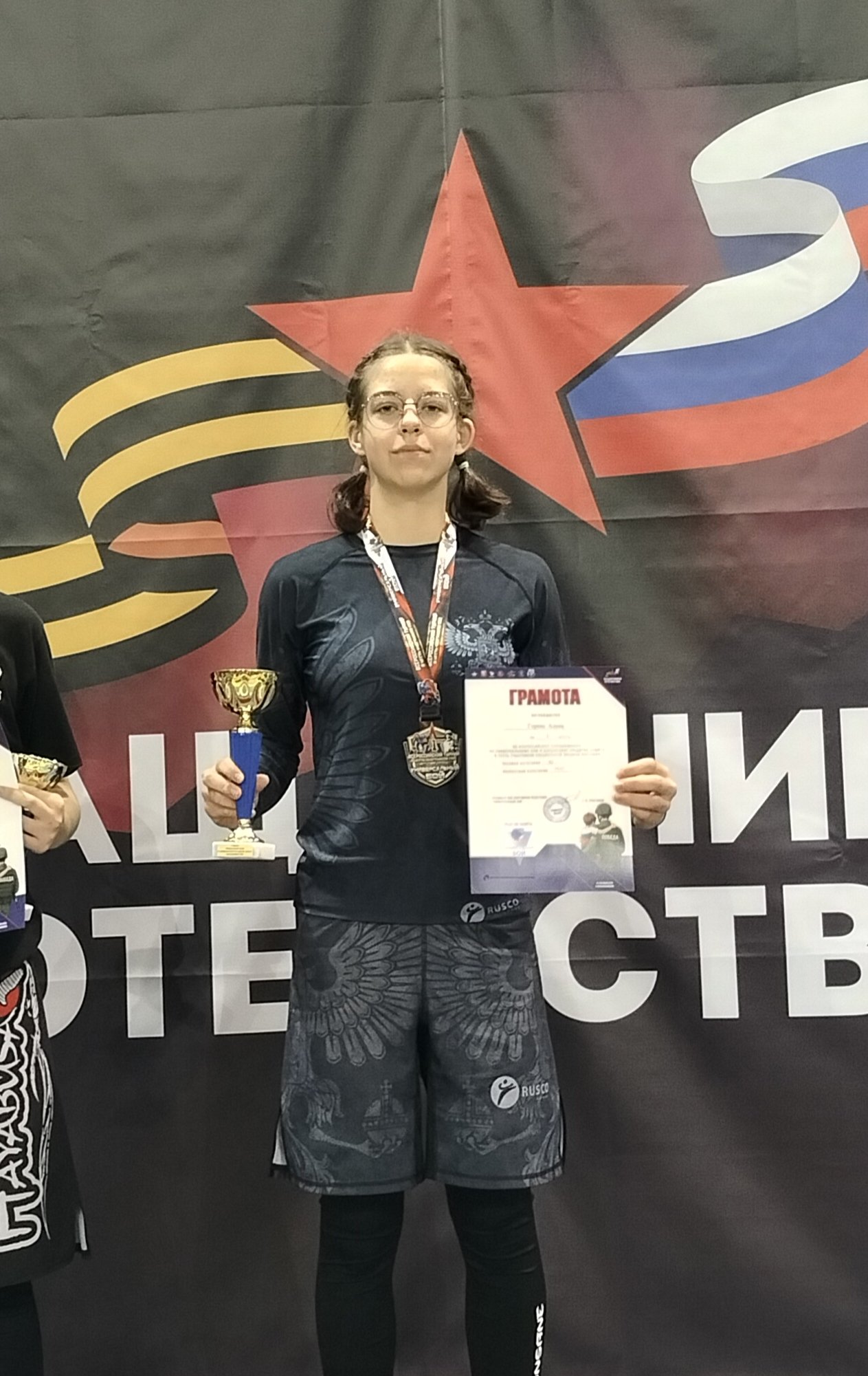 Грамота за 1 место на Всероссийском турнире по универсальному бою "средства защиты" (12-17 лет) г. Краснознаменск, 3-4 октября 2025 года